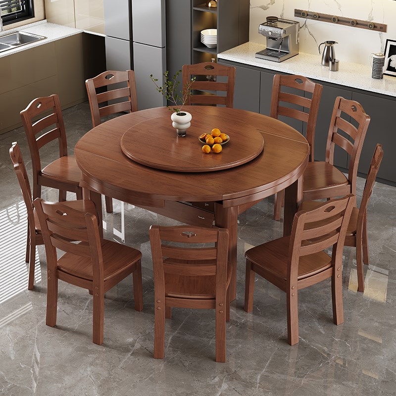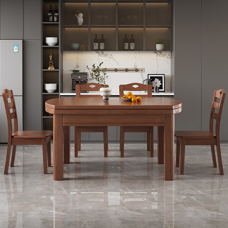可伸缩实木餐桌椅组合现代简约折叠方圆两用小户型圆形家用桌子