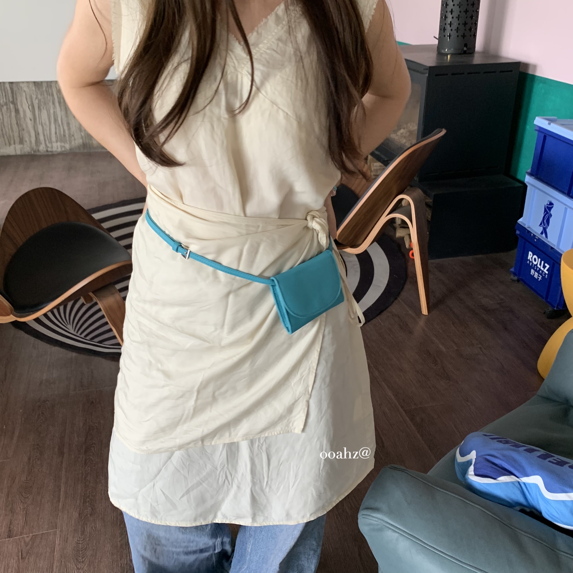 蒂芙尼蓝~小废显眼包腰包叠背挂饰 多功能卡包钱包零钱包两根带子