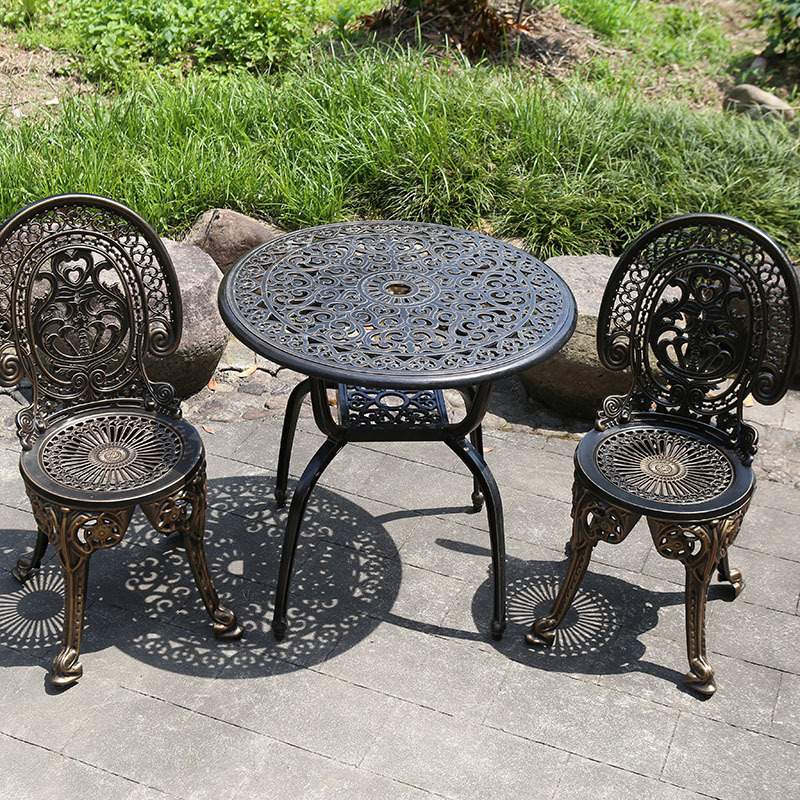 户外休闲桌椅庭院小区别墅铁艺铸铝三件套阳台室外露台休息家具