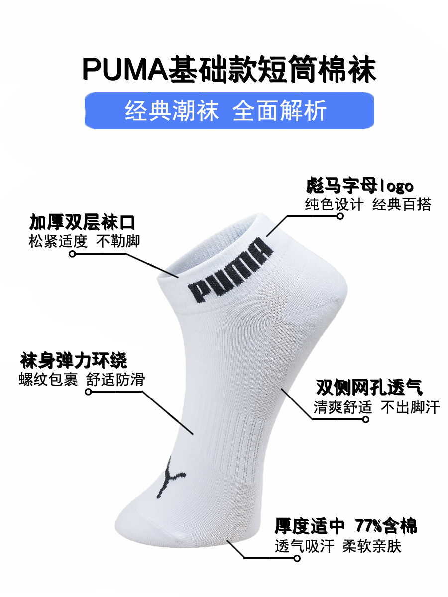 PUMA正品彪马袜子男款秋冬季运动训练短袜女士低帮短筒黑白色棉袜