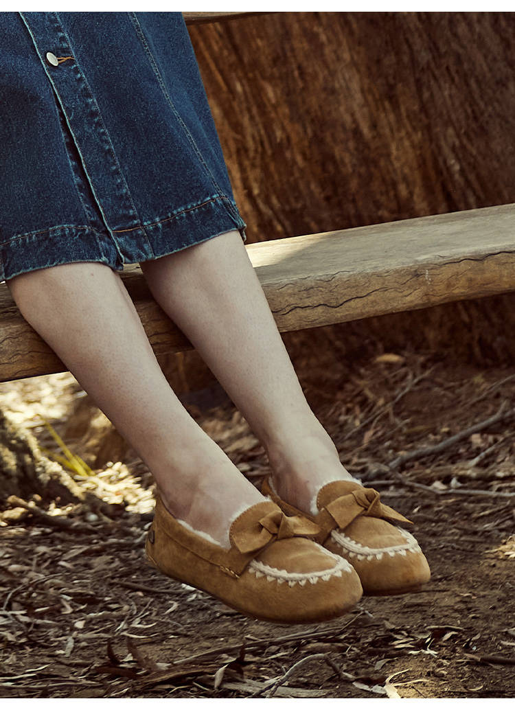 EAERAU羊毛豆豆鞋女2024年新款棉鞋一脚蹬圆头乐福鞋女保暖EA1021