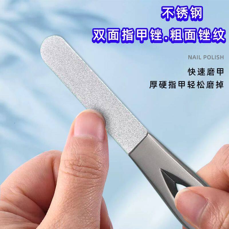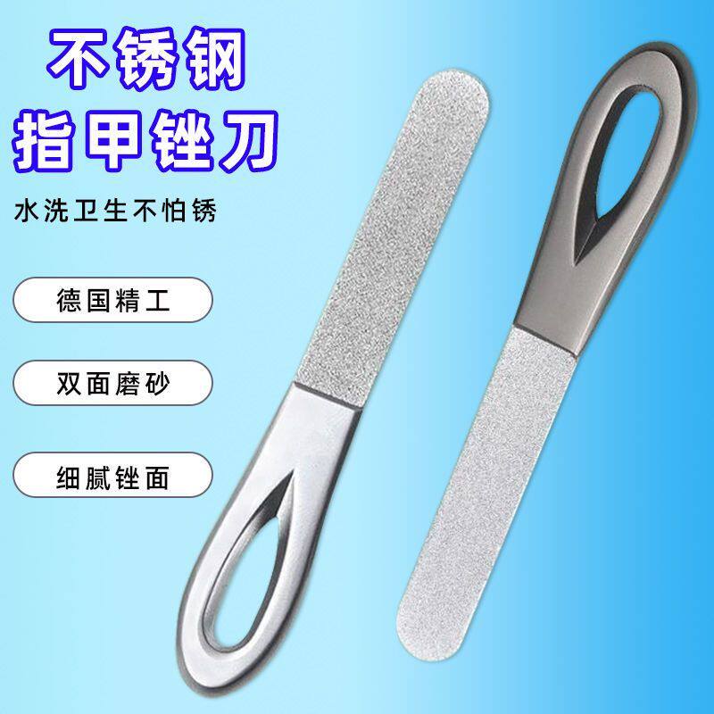 德国精工指甲锉刀不锈钢双面磨甲器打磨修型美甲工具高档指甲锉条