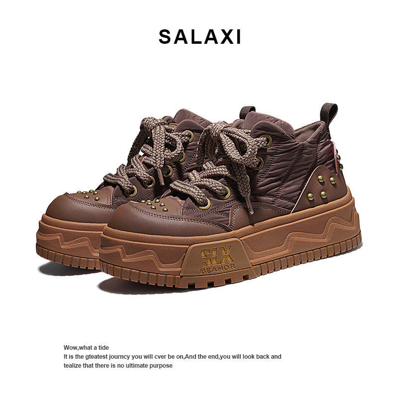 Salaxi/莎莱茜秋冬新款时尚厚底板鞋百搭增高男女款高帮休闲鞋