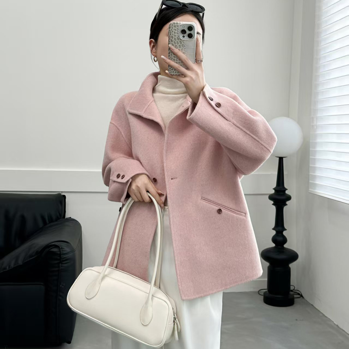 高级感黄色双面羊绒大衣女中长款2025新款立领单排扣羊毛呢外套