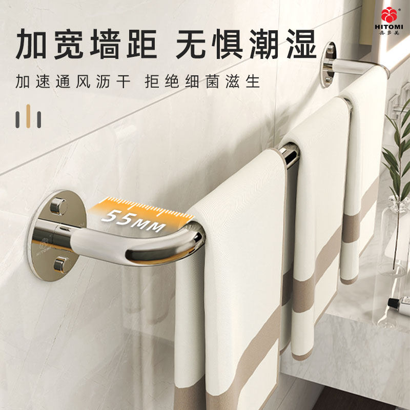 毛巾架不锈钢304加厚浴室毛巾杆挂杆免打孔卫生间凉毛巾架子单杆