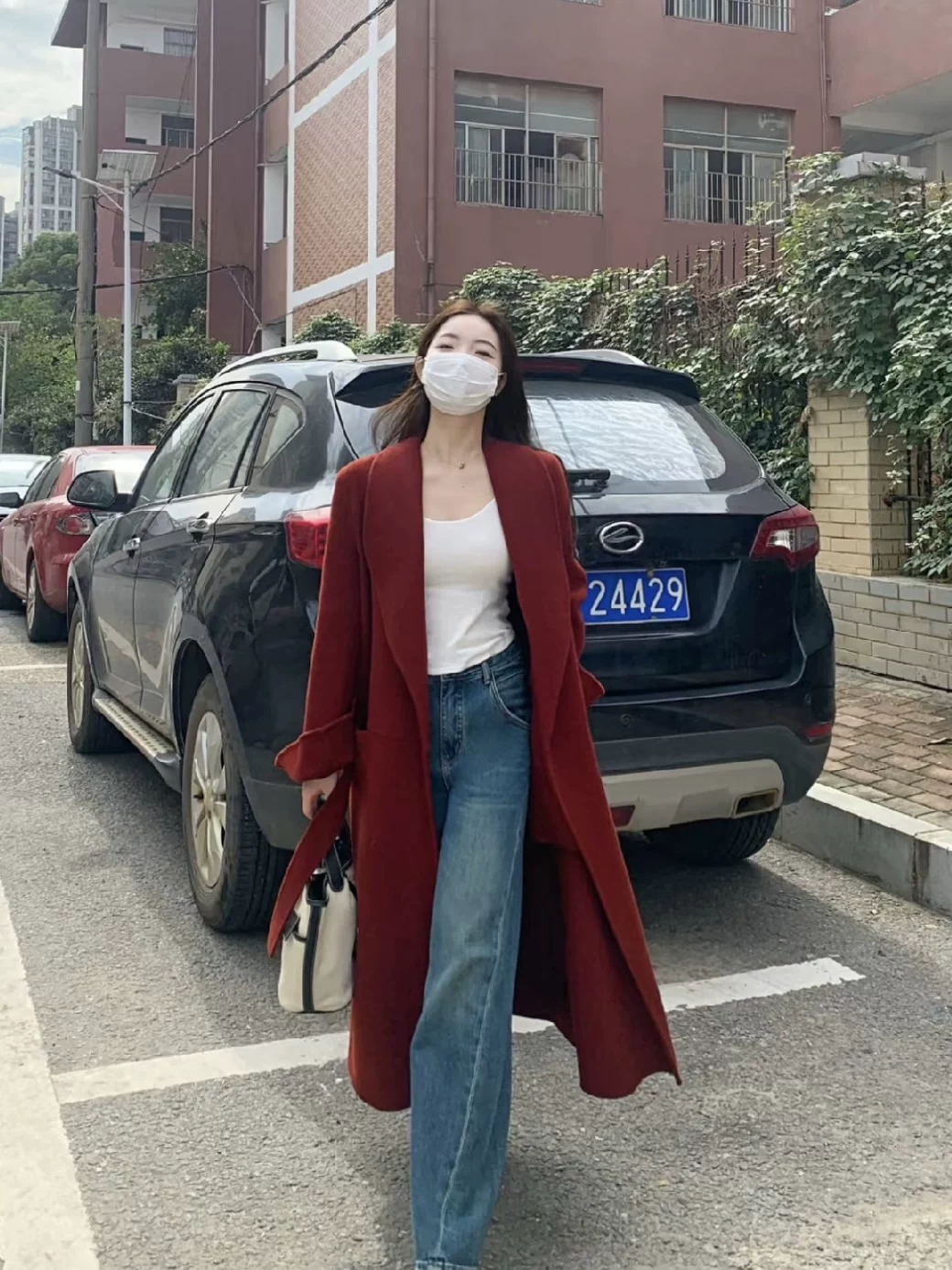 双面呢羊绒大衣羊毛大衣女2025秋冬新款无扣系带中长款羊毛呢外套