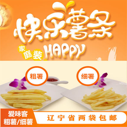 辽宁省2袋包邮爱味客2kg雪川粗薯条3/8细薯珍珠1/4冷冻油炸半成品