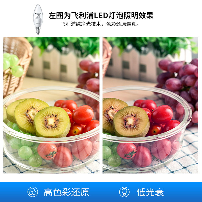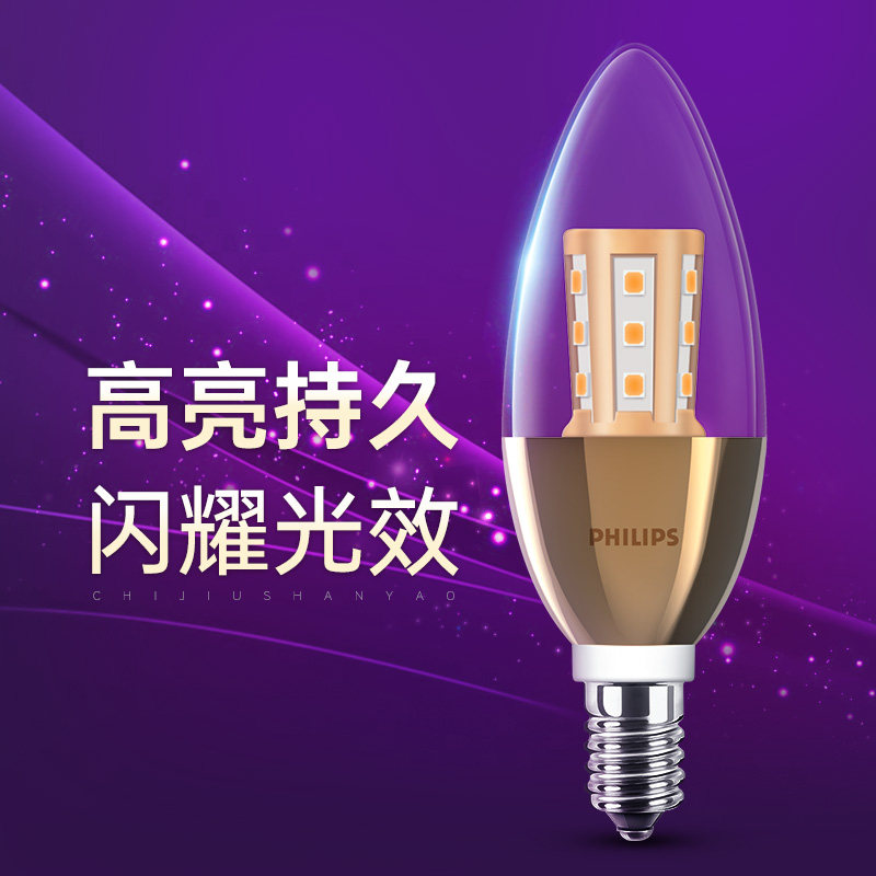 飞利浦led蜡烛节能尖泡拉尾小灯泡家用超亮e14e27螺口水晶灯吊灯