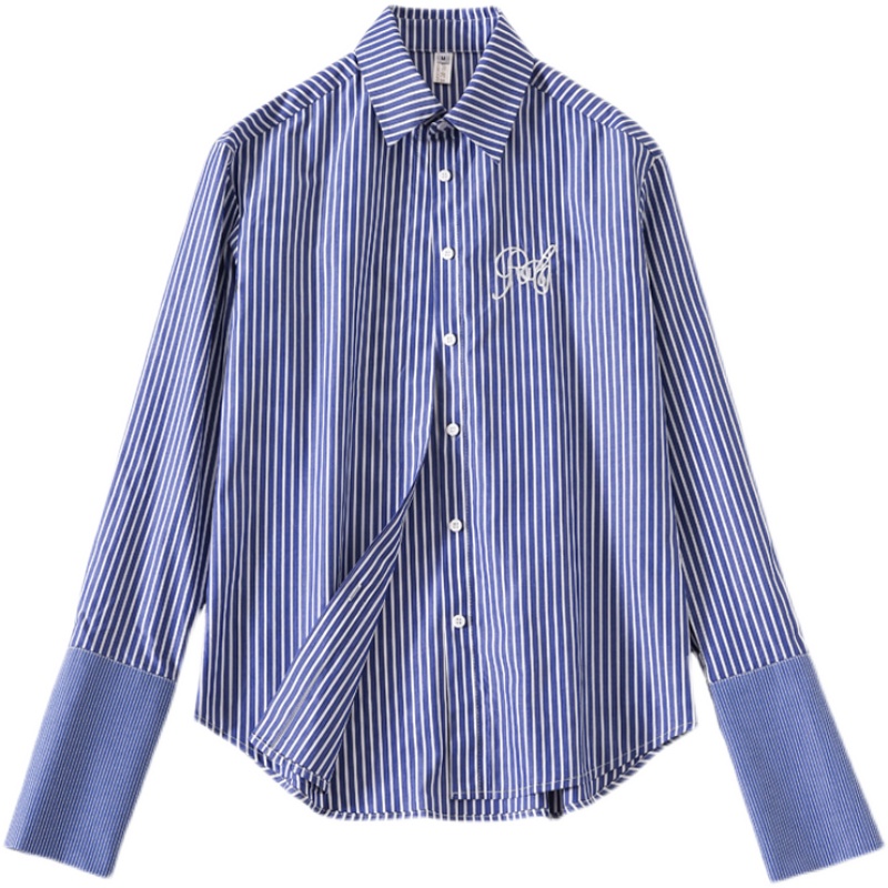 蓝色条纹衬衫女设计感小众2024春夏新款复古港味宽松长袖明星同款