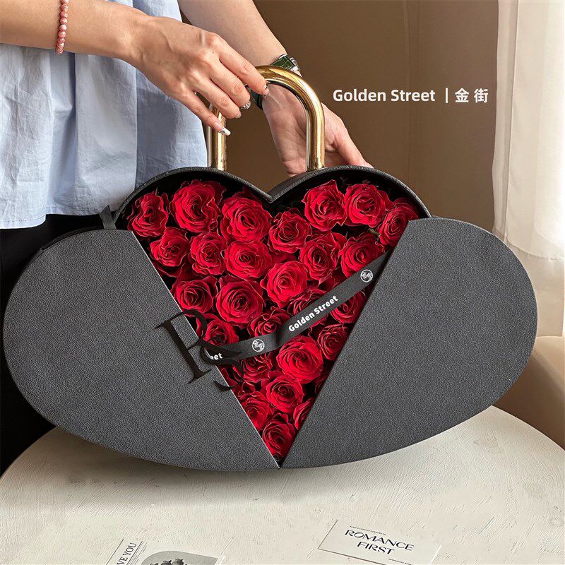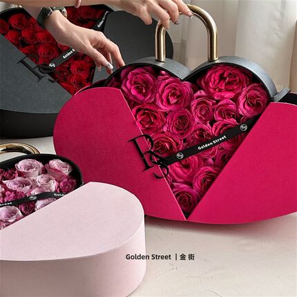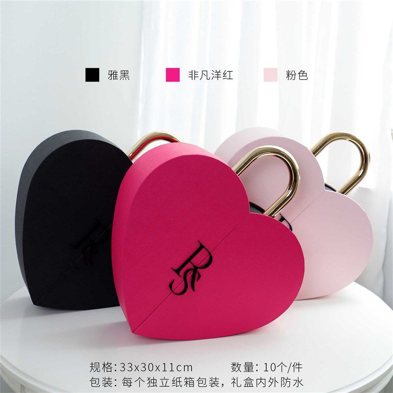 新品 锁芯礼盒 情人节玫瑰鲜花爱心盒K花艺包装盒礼盒花店花盒