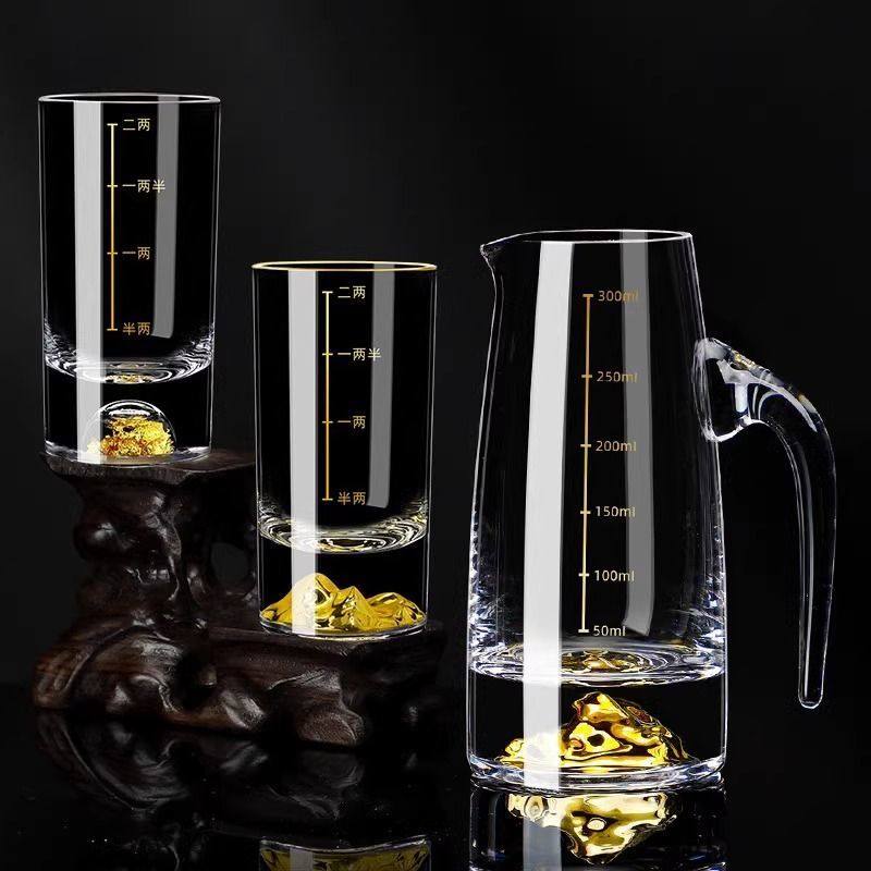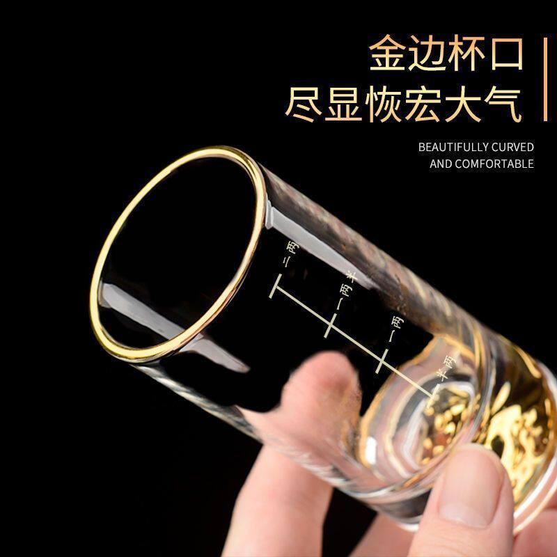 轻奢白酒杯高颜值二两套装家用金箔分酒器烈酒杯水晶玻璃酒具礼盒