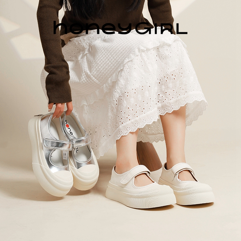 honeyGIRL银色玛丽珍单鞋女夏季2025新款厚底小白鞋休闲百搭板鞋