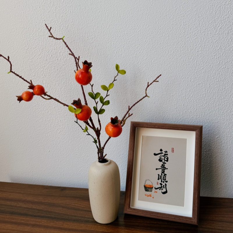 民宿风仿真石榴花瓶摆件客厅玄关电视柜插花陶瓷花器桌面装饰品