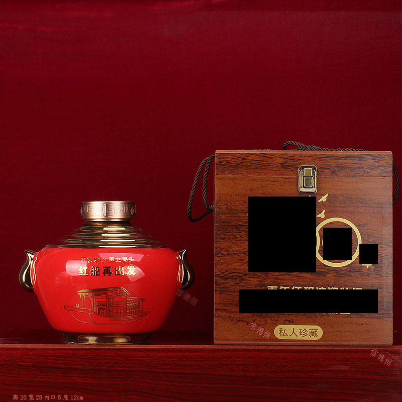空酒瓶景德镇陶瓷5斤红镀金双耳牛角白酒坛子家用密封酒壶酒罐