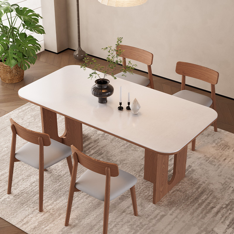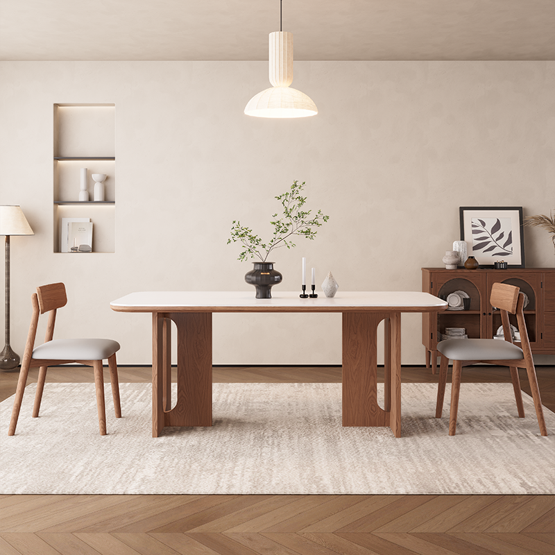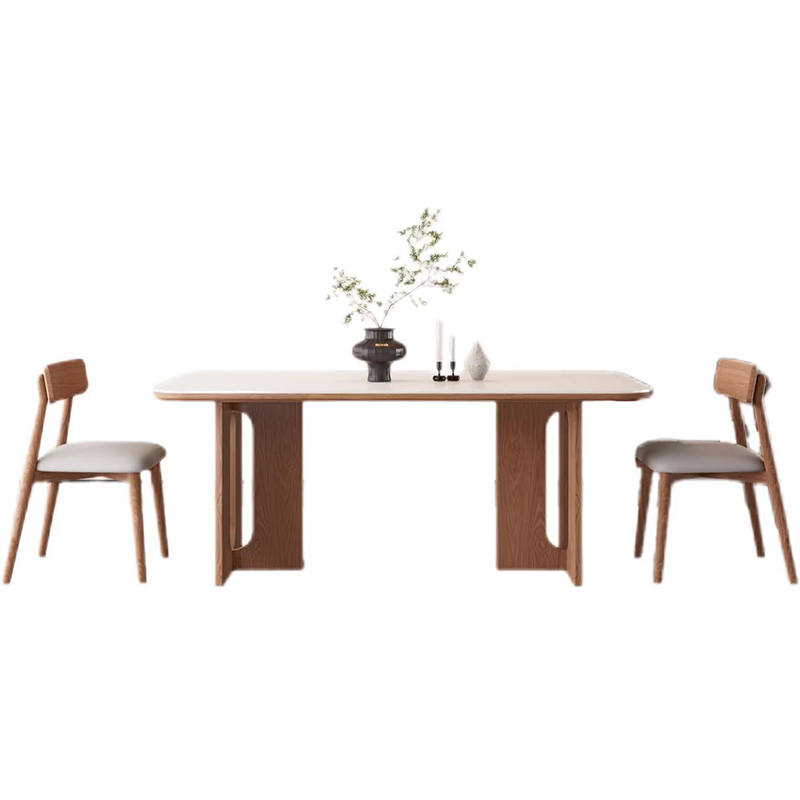 佳嘉美家居2025年新款北欧胡桃色岩板实木餐桌椅组合复古风桌子