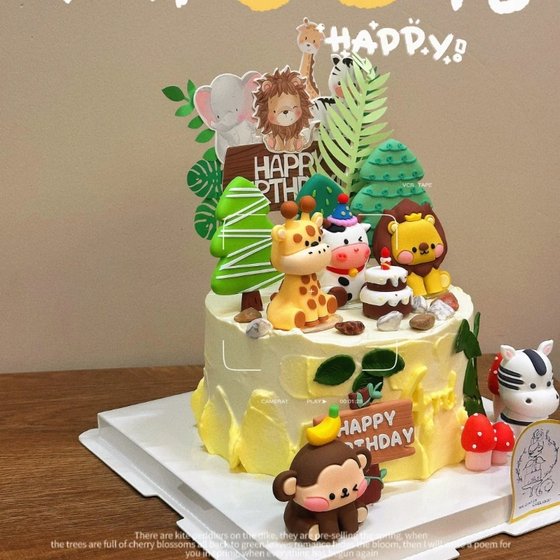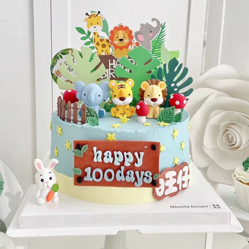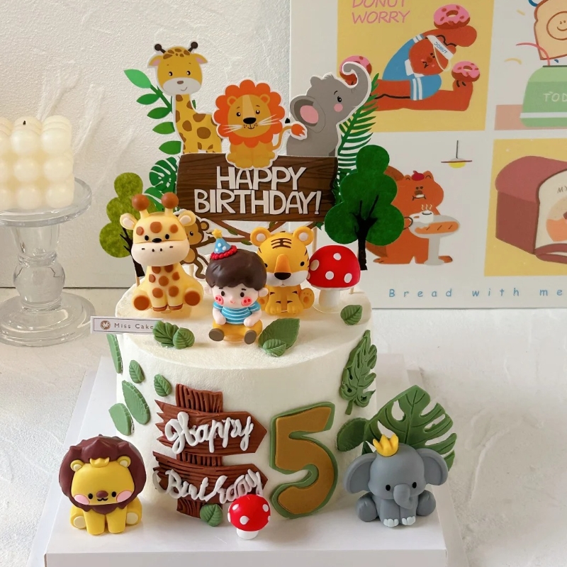 网红烘焙蛋糕装饰森系动物园蛋糕摆件男孩女孩生日老虎狮子小动物