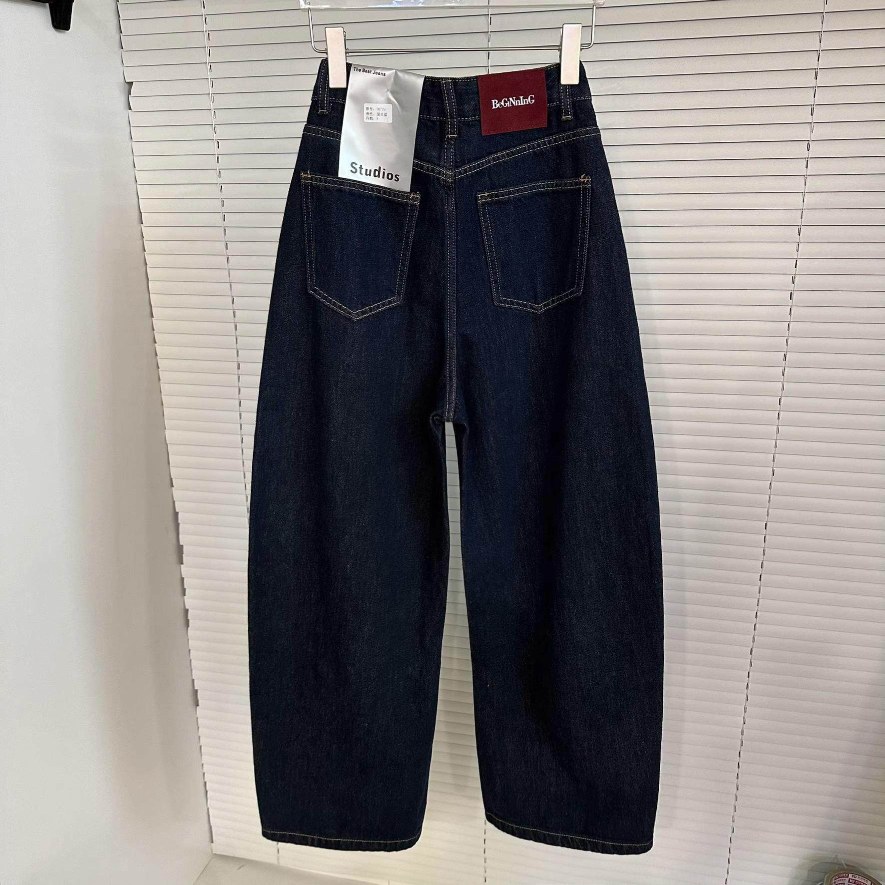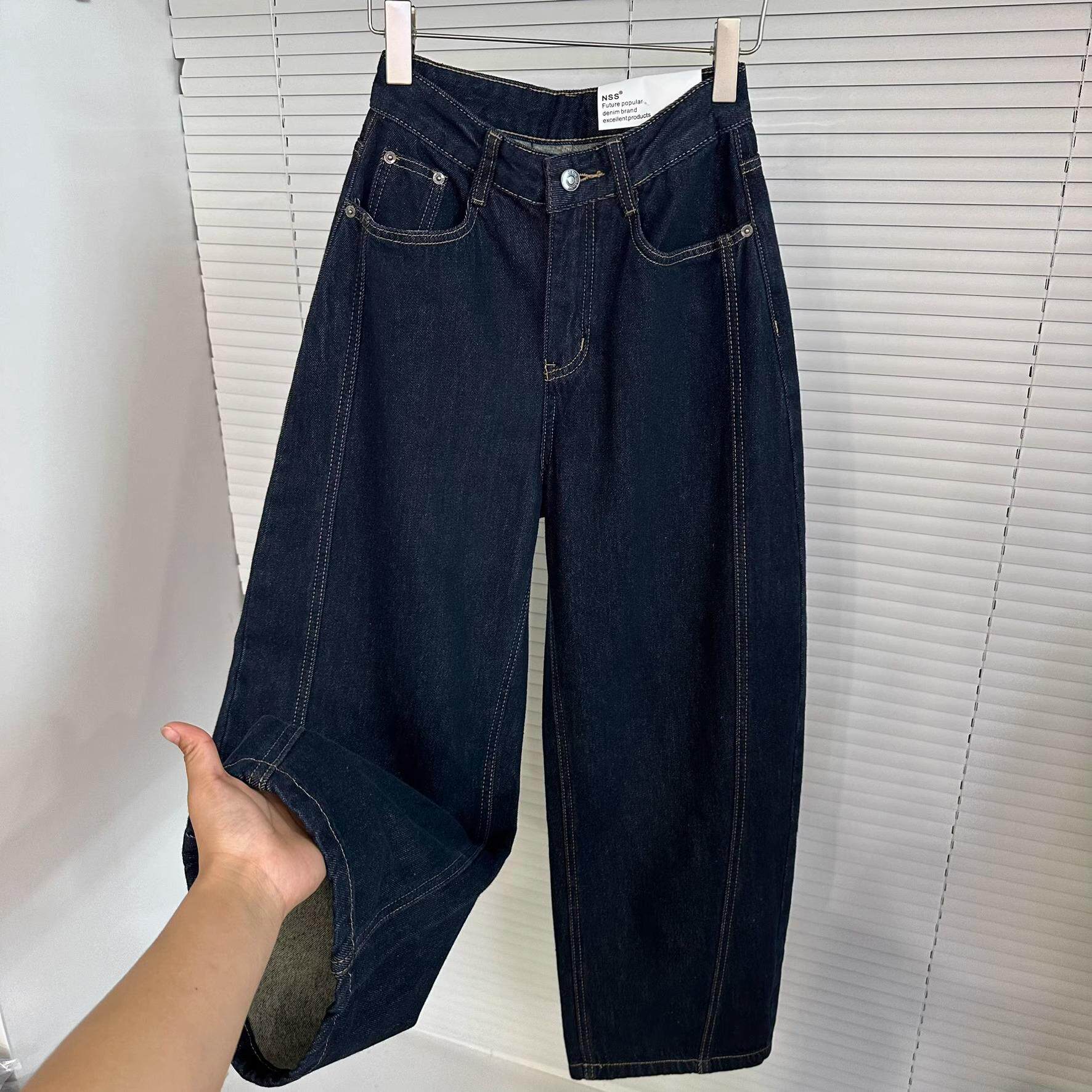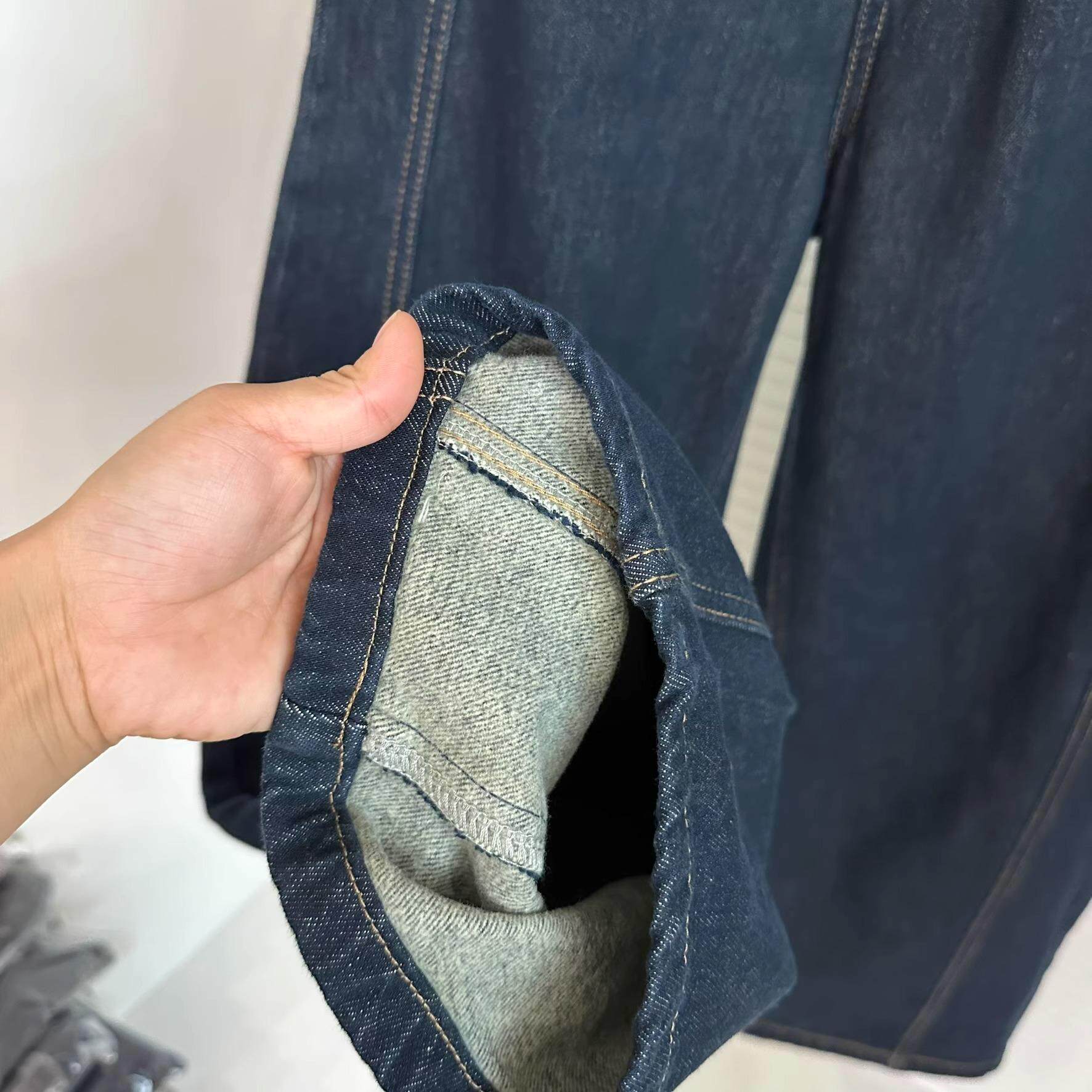 韩系复古明线设计镰刀牛仔裤女2024冬季新款高腰磨毛保暖哈伦裤潮