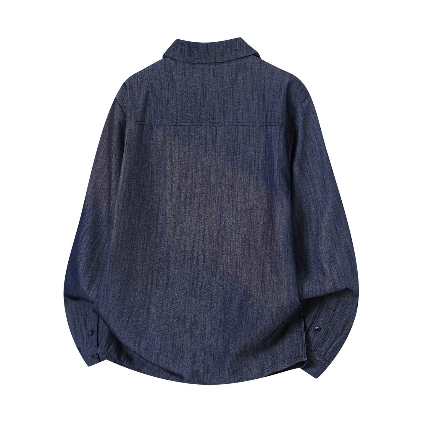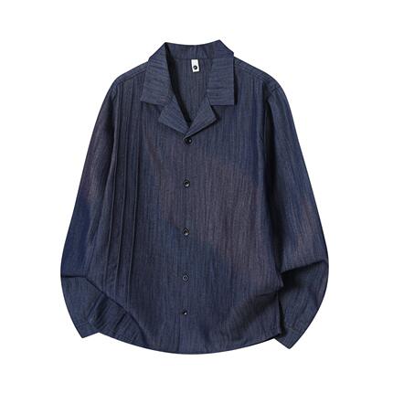 老钱风古巴领牛仔衬衫男春季2026新款肌理感落肩长袖衬衣外套控价