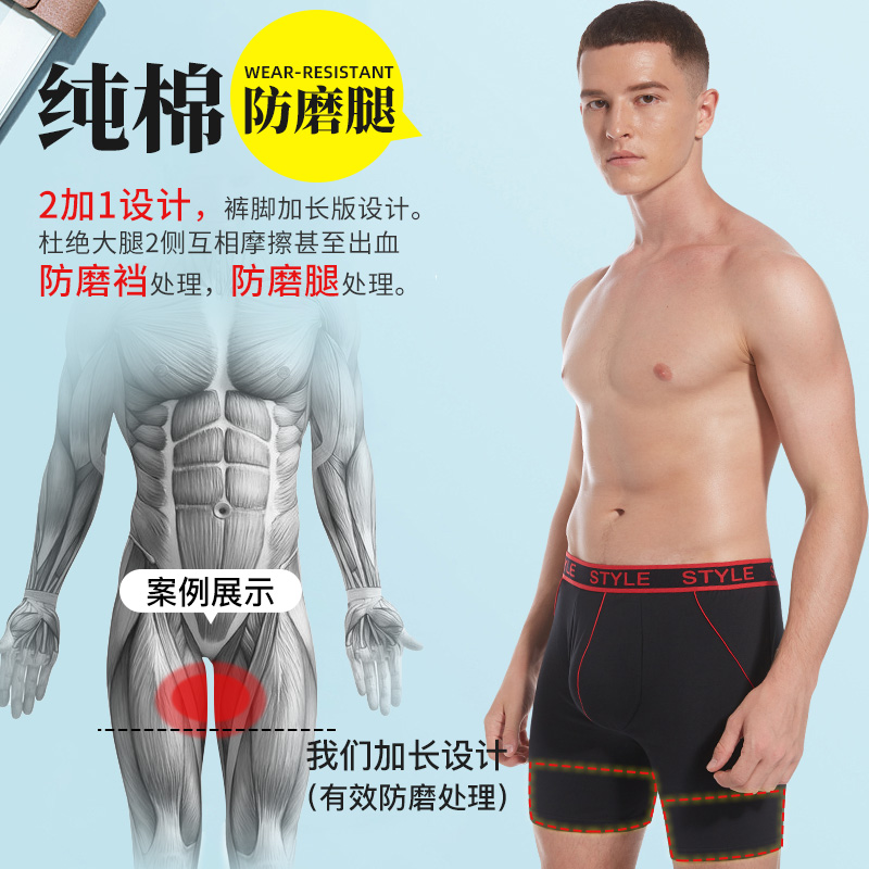 男士纯棉内裤男防磨腿四角裤长腿大码宽松加长大码宽松透气肥佬裤