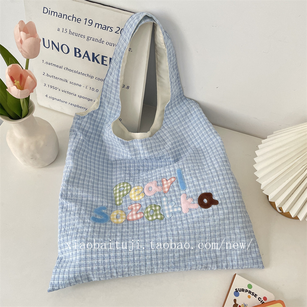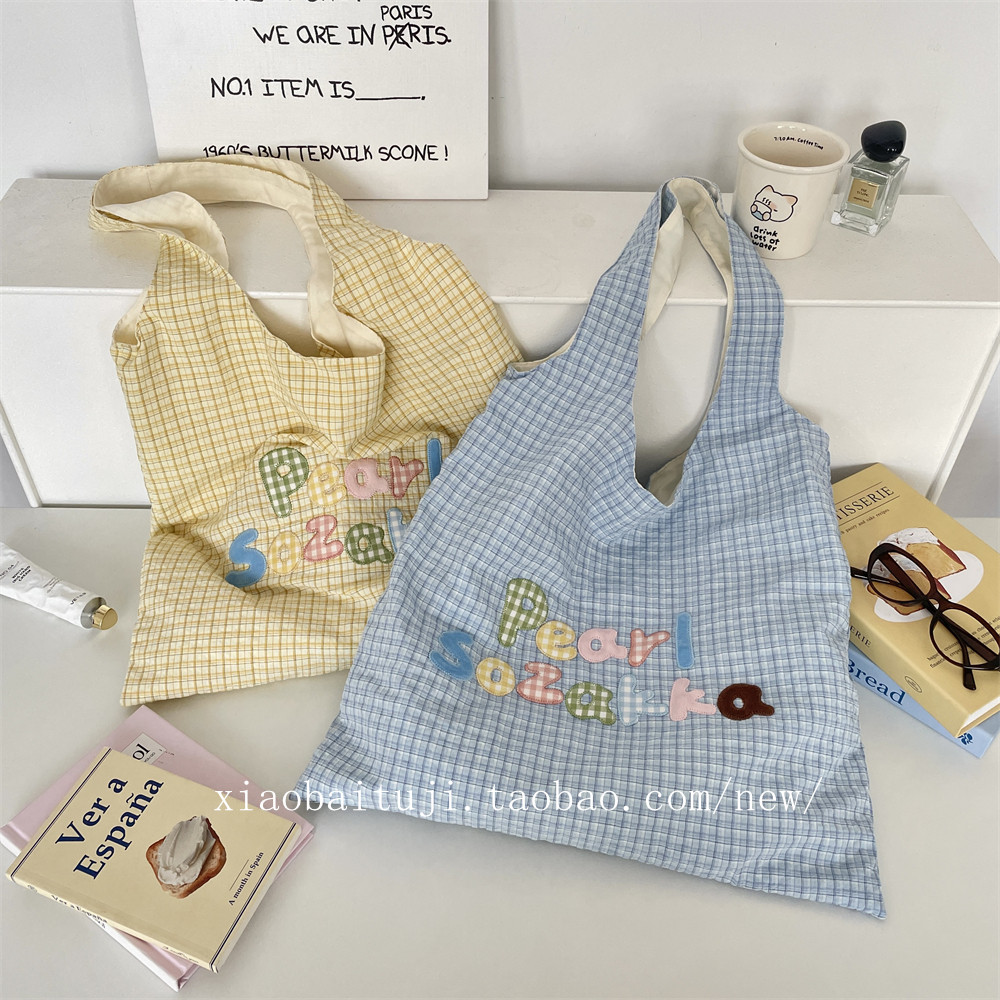 小白兔几 韩系彩色字母刺绣格纹单肩包可爱背心腋下包百搭通勤女