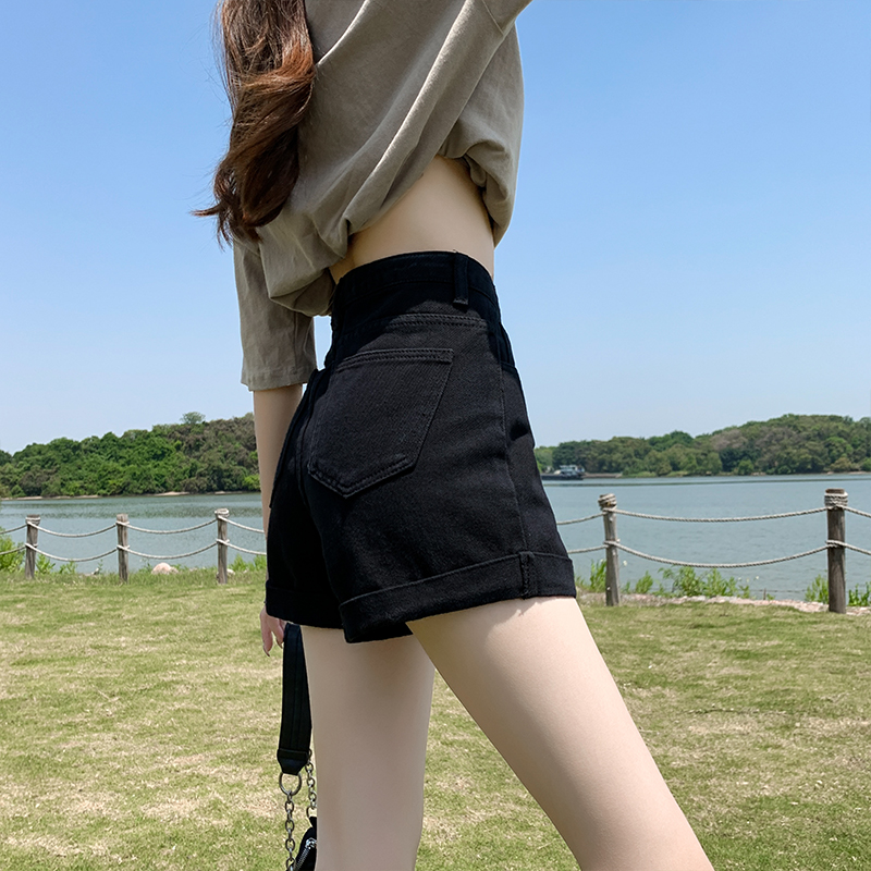 黑色牛仔短裤女夏季薄款2024年新款高腰显瘦弹力a字辣妹卷边热裤