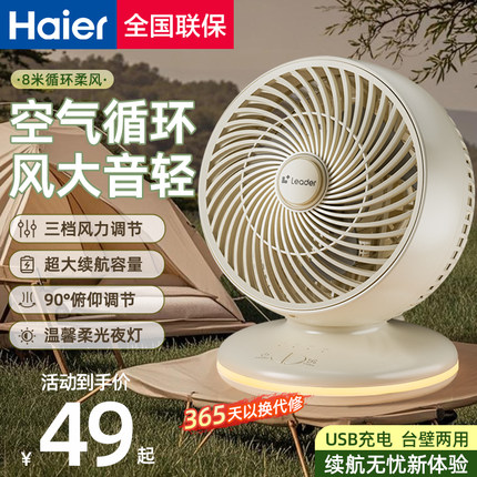 海尔电风扇家用户外学生寝室USB充电超长续航空气循环扇台壁两用