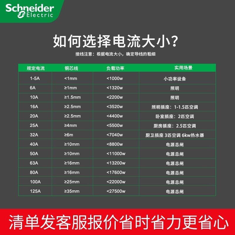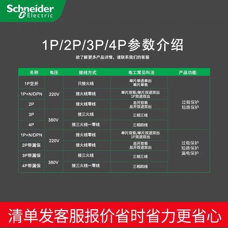 施耐德1P空气开关2P家用80A三相3P断路器IC65N 4P空开小体积电闸