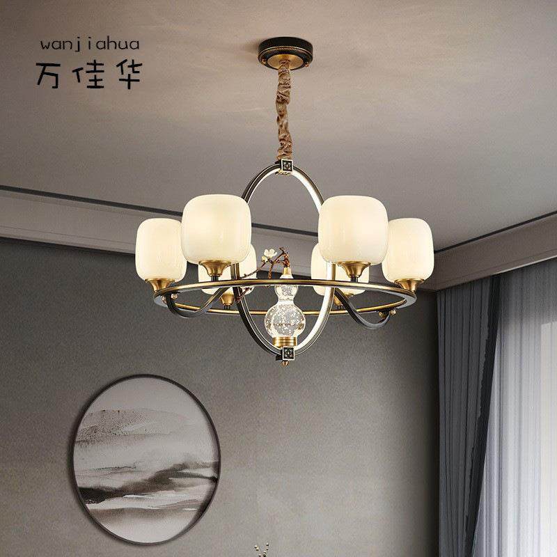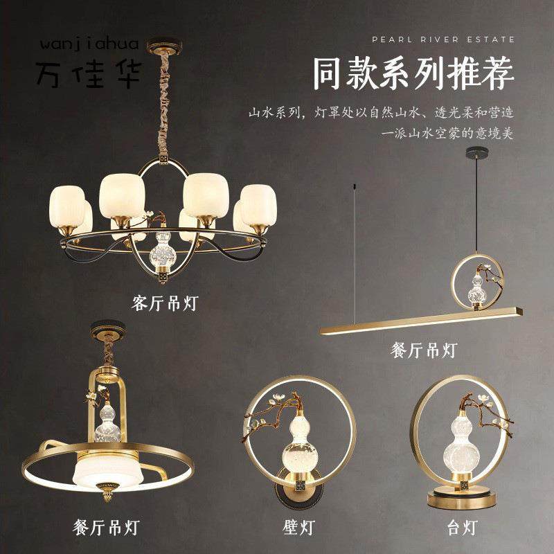 万华新中式客厅吊灯创意中国风全铜灯具现代中式复式楼卧室灯饰