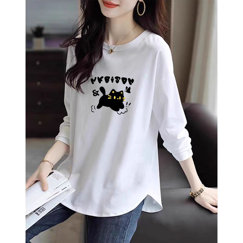 下摆弧形纯棉打底衫女秋冬内搭中长款遮屁股宽松大码长袖t恤上衣