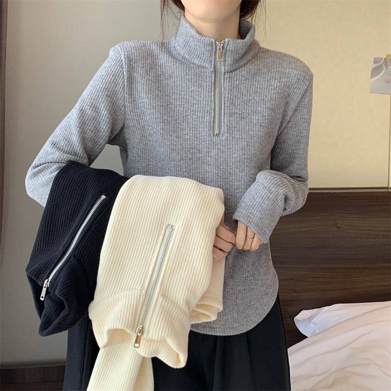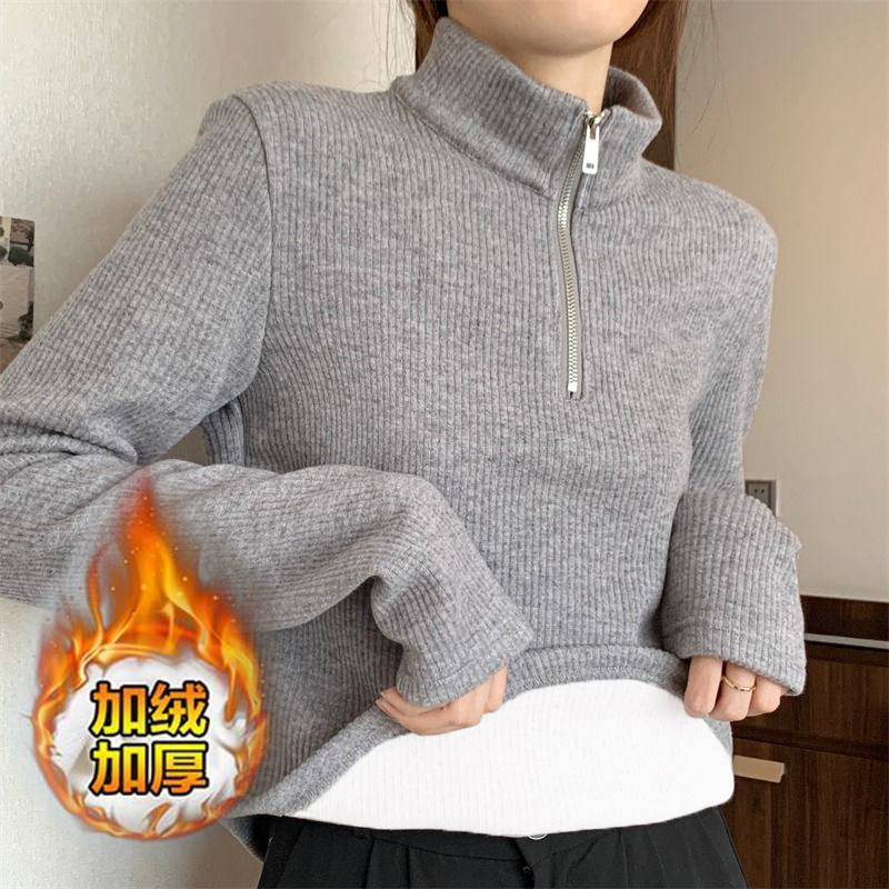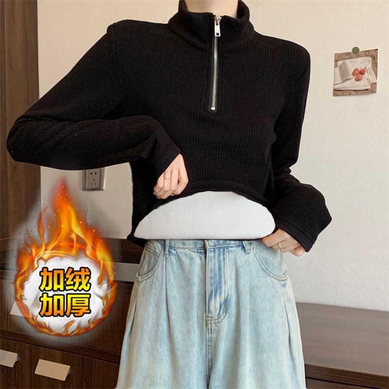 大码女装加绒高领加厚打底新款拉链秋冬季不规则时尚保暖上衣卫衣