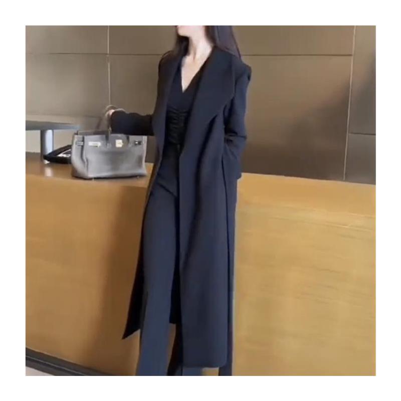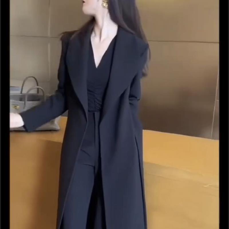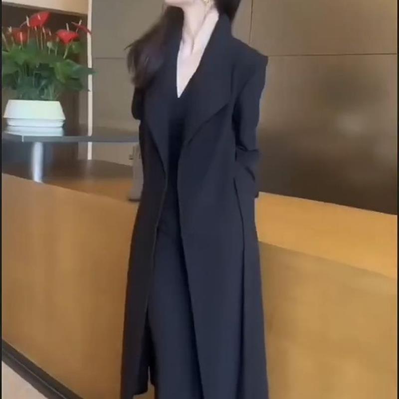 网红爆款时尚外套女2025秋冬新款高级感显瘦风衣+打底衫+微喇裤