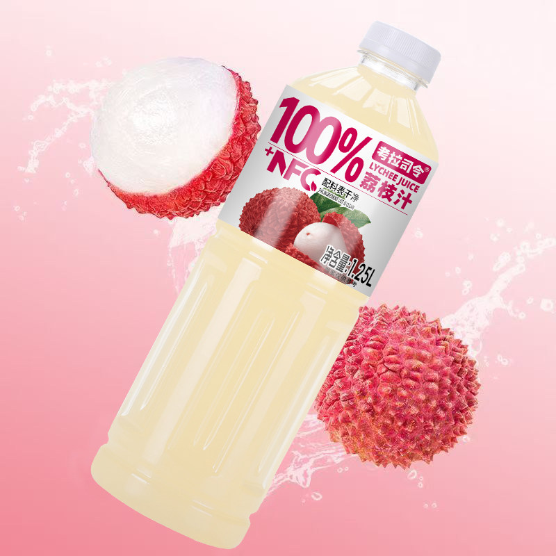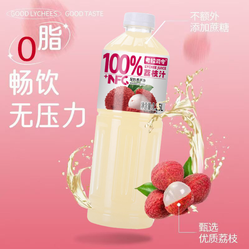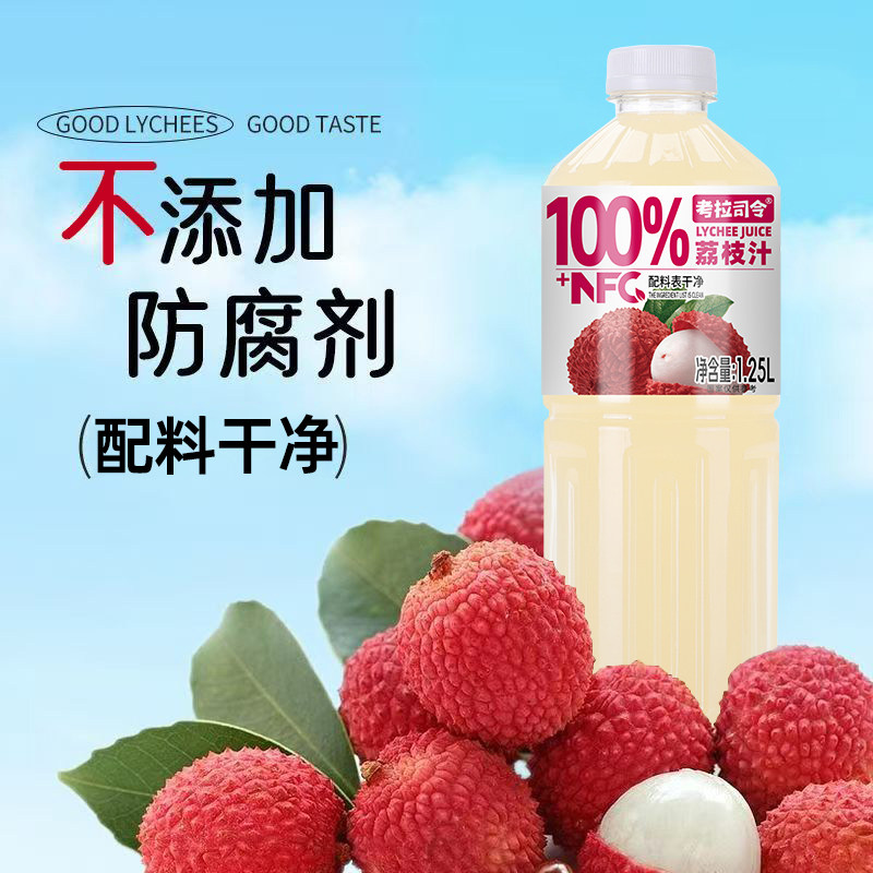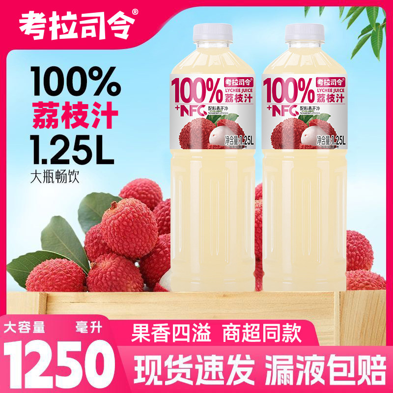 100%荔枝汁1.25L*2大瓶装清爽饮料加NFC果汁好喝正宗饮品0添加剂