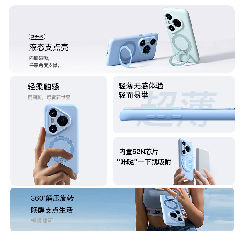 QPB适用华为Pura80Pro+手机壳P80液态硅胶旋转支架软镜头全包Pura80手机套Pro防摔Pura80Ultra男女纯色保护套