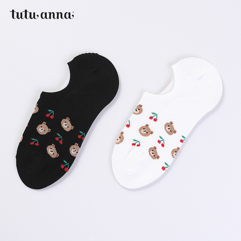 tutuanna袜子 女 春秋薄款纯色卡通兔子胡萝卜图案防滑船袜女