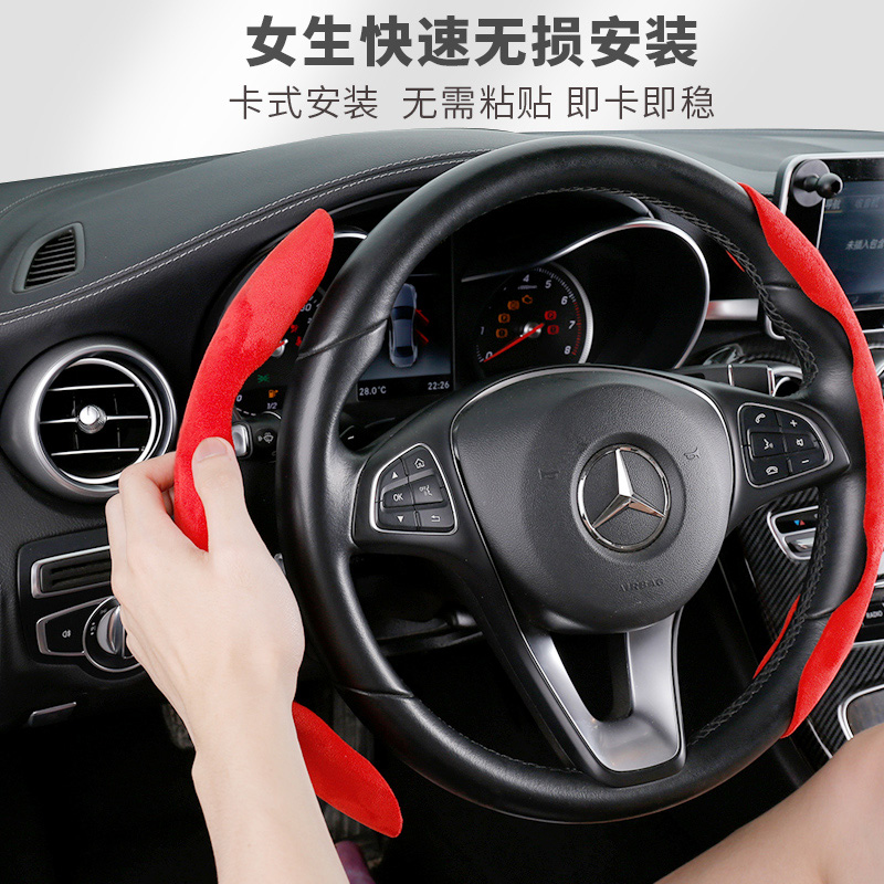 通用翻毛方向盘套夏季防滑吸汗鹿皮绒碳纤纹方向盘套四季超薄把套
