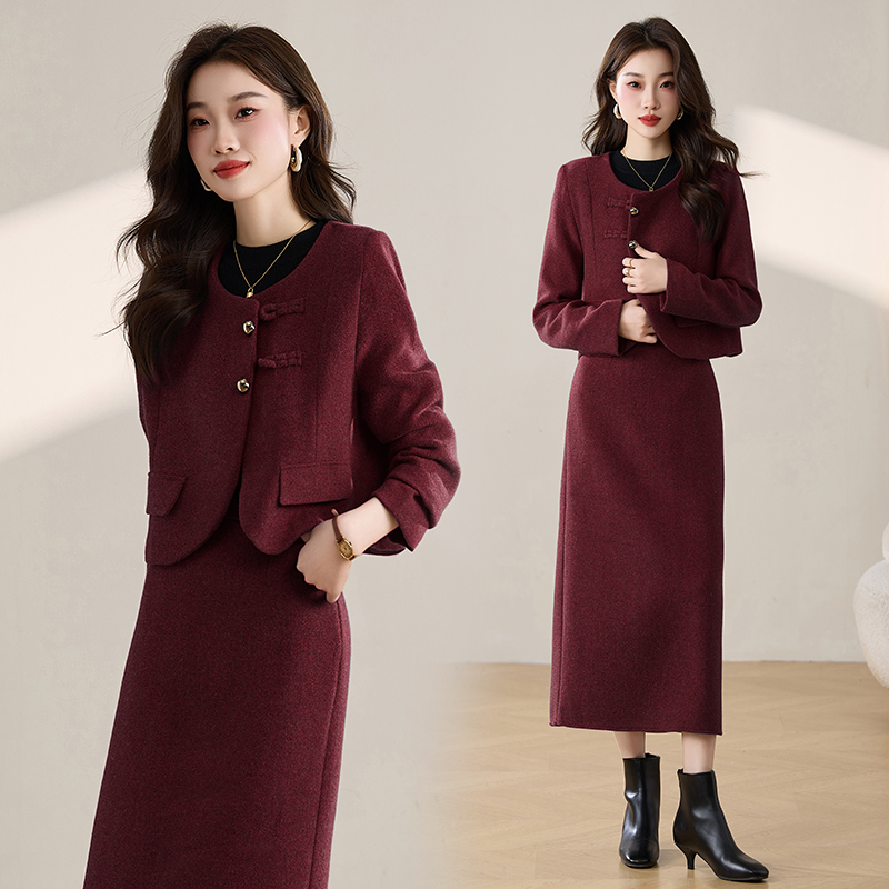 法式小香风毛呢套装裙女2025秋冬新款高级感气质羊毛半身裙两件套