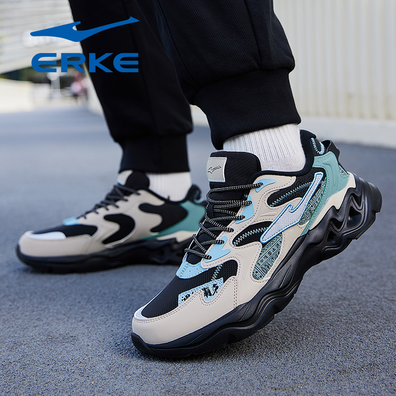 鸿星尔克运动鞋男鞋2025新款青少年中学生防水皮面休闲老爹跑步鞋