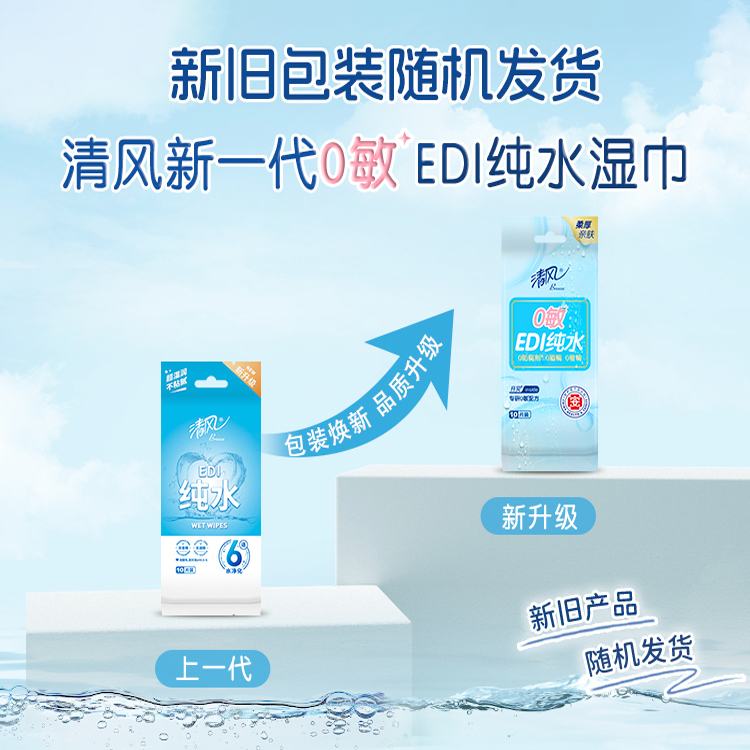 清风EDI纯水湿巾独立包装湿纸巾便携式小包随身单片装清洁10片/包