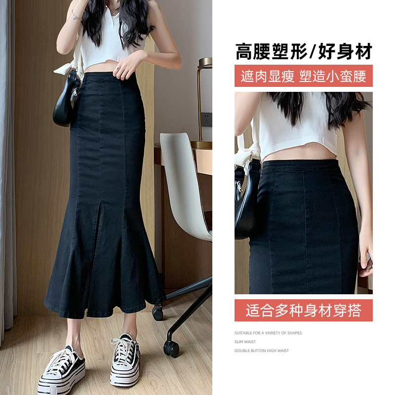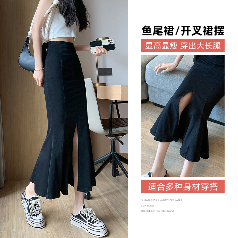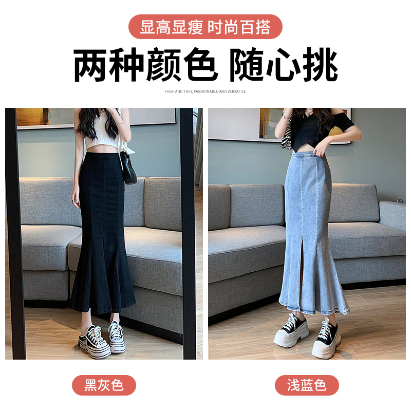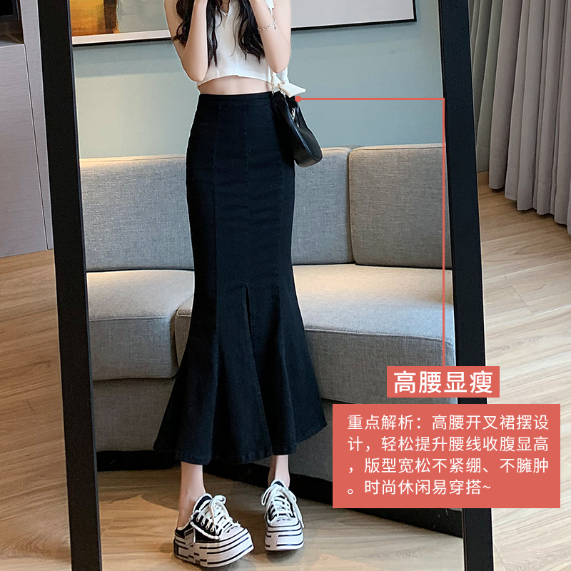 佩艳长裙鱼尾裙包臀a字开叉牛仔