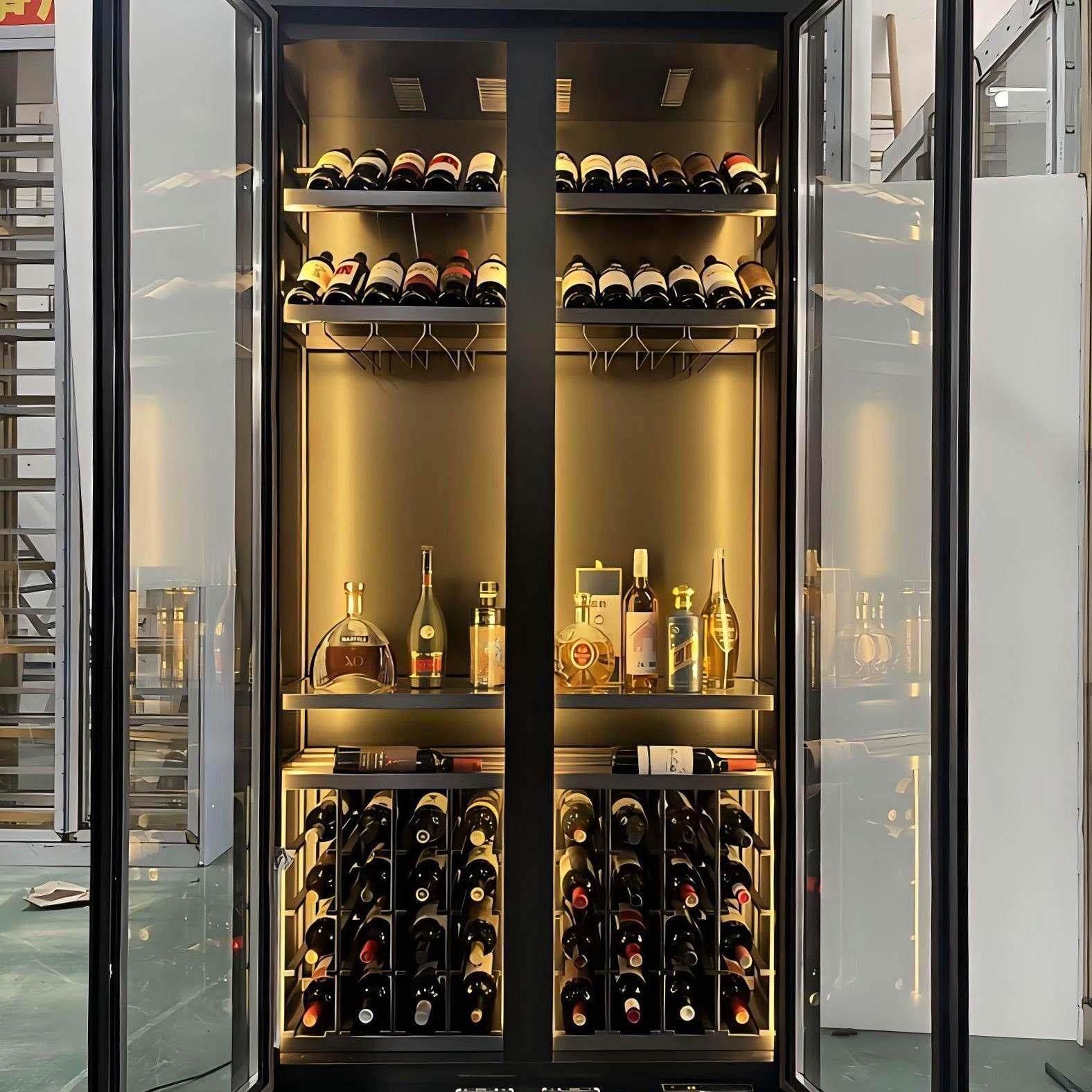 不锈钢酒柜厂家定制餐厅轻奢地下室恒温柜家用酒窖装饰展示红酒架