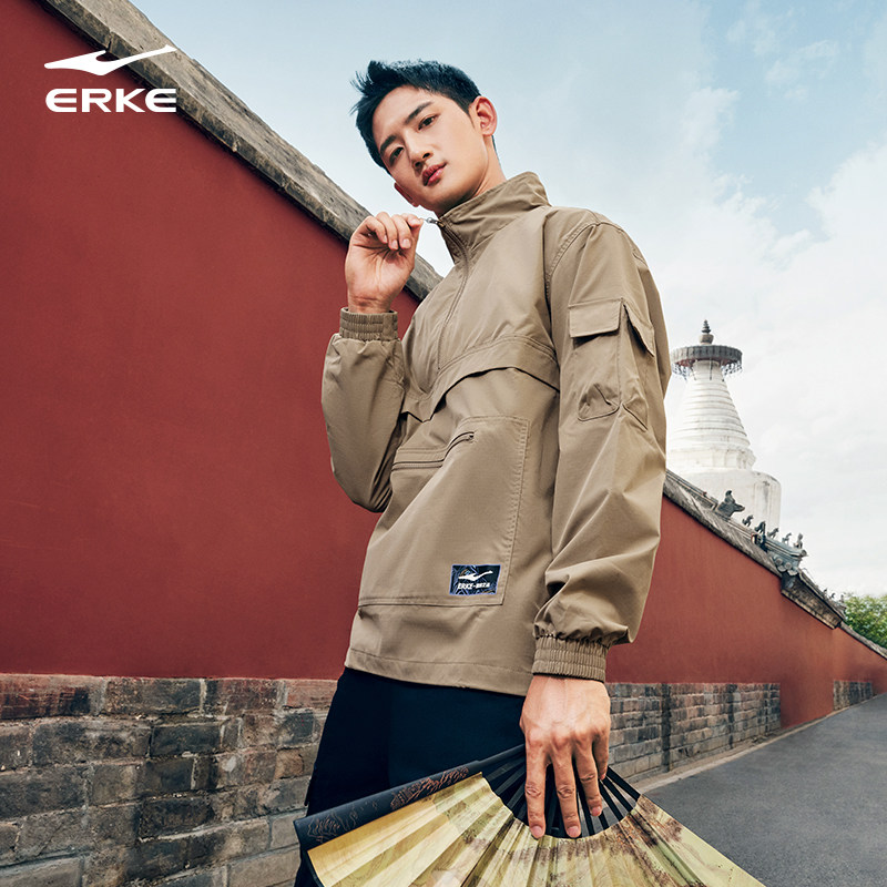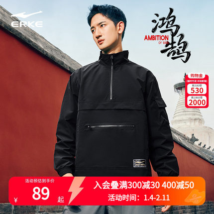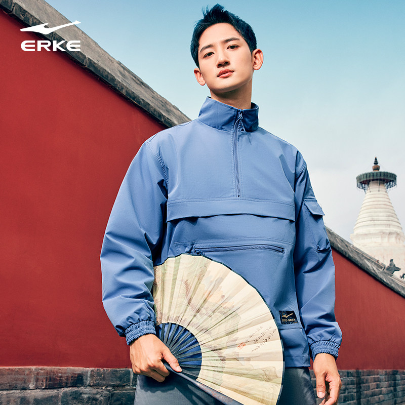 伍岳独尊鸿星尔克男梭织套头上衣2025春款新款红星旗舰店官网官方