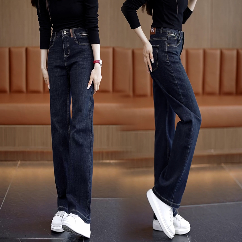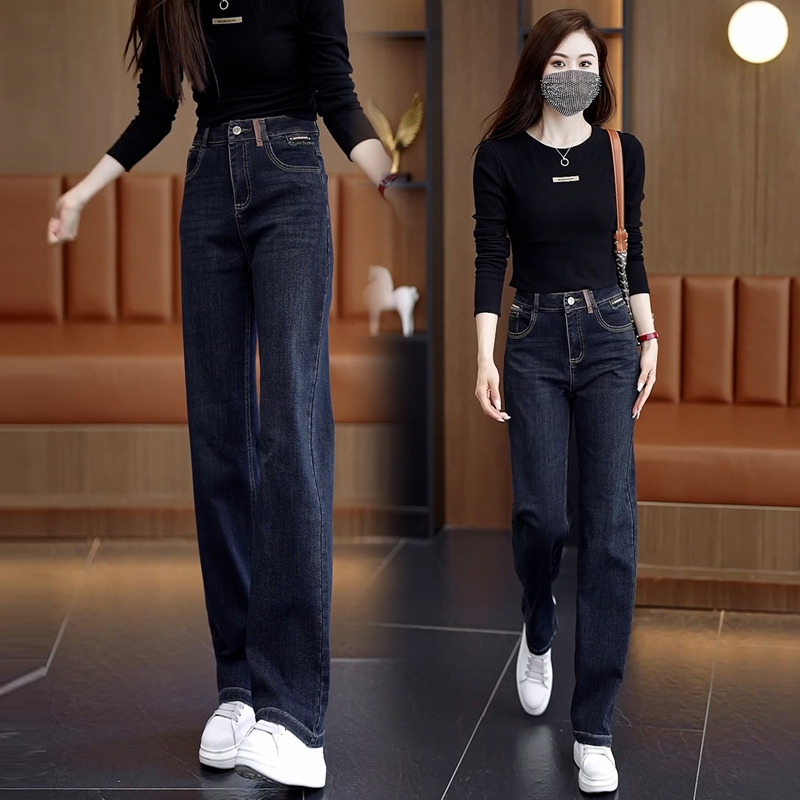 高腰宽松显瘦窄版阔腿牛仔裤女2025年秋季新款百搭直筒裤女士长裤