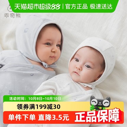 乖奇熊初生宝宝产房可爱胎帽婴幼儿纯棉外出防风护耳小帽子春秋季