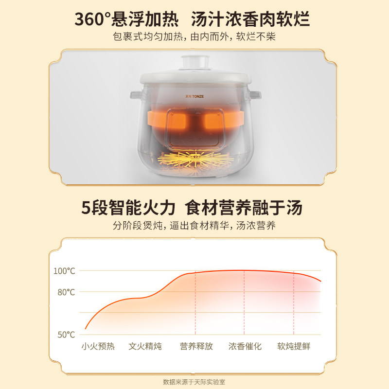 天际全自动紫砂胆煮粥煲汤电炖锅