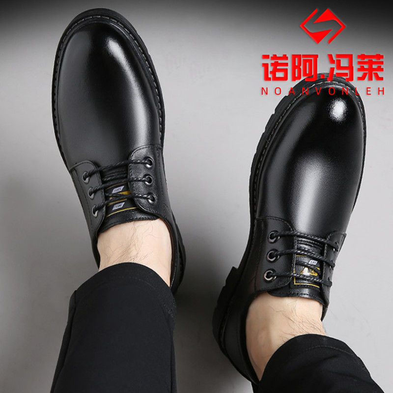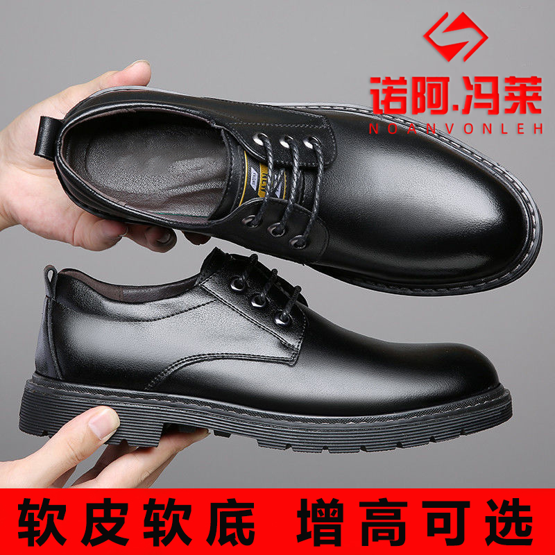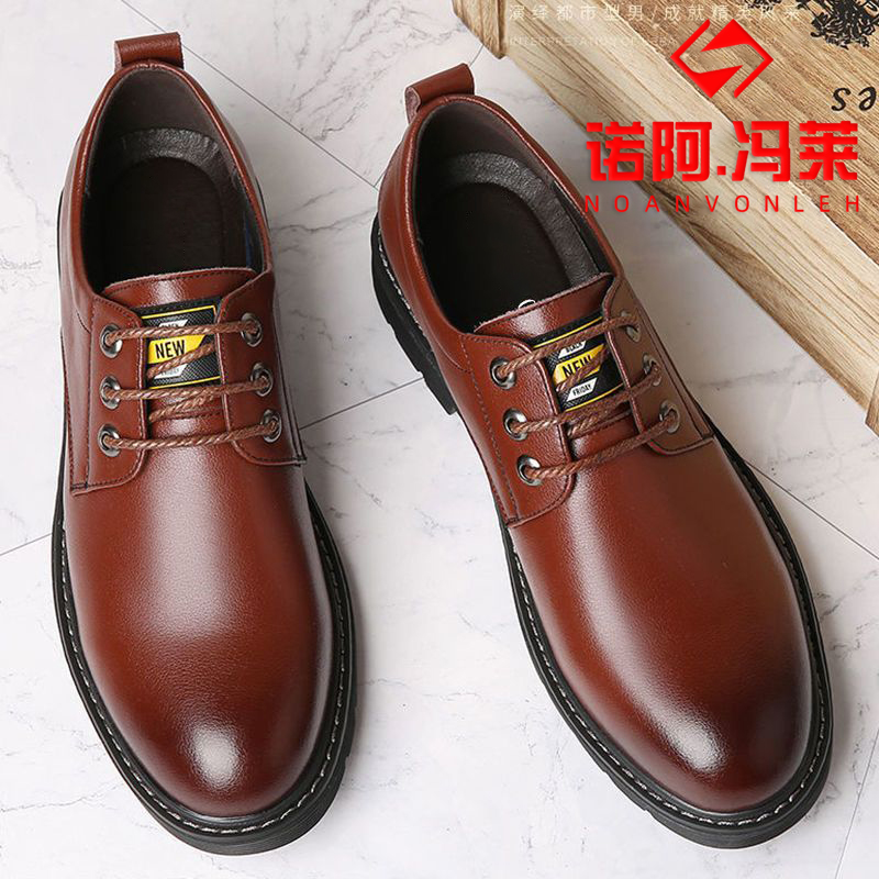 皮鞋男士真皮商务鞋秋季透气内增高休闲鞋子百搭系带青年正装男鞋