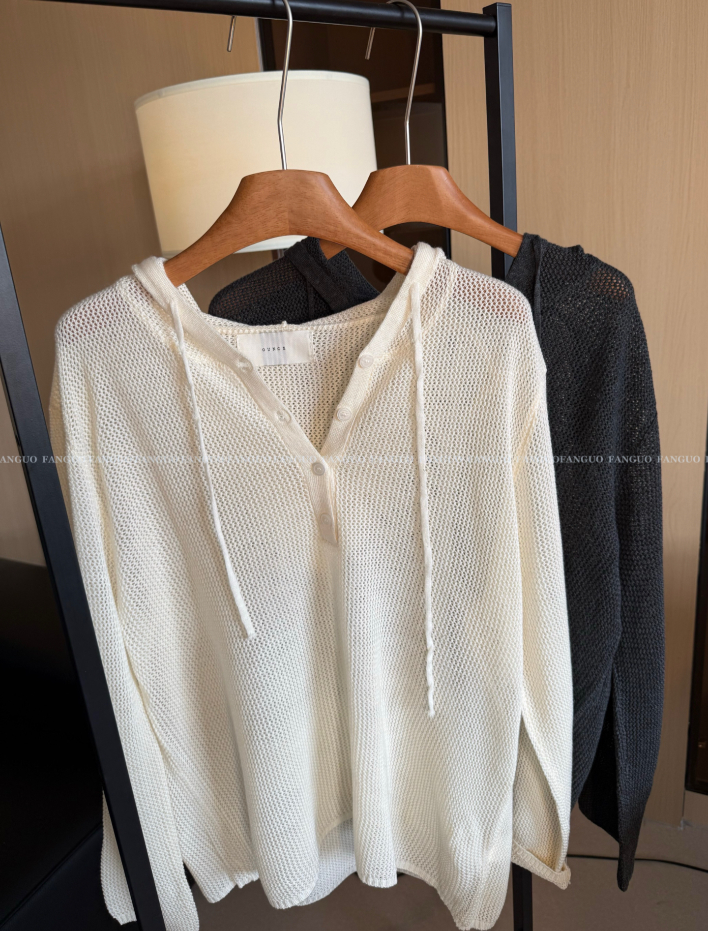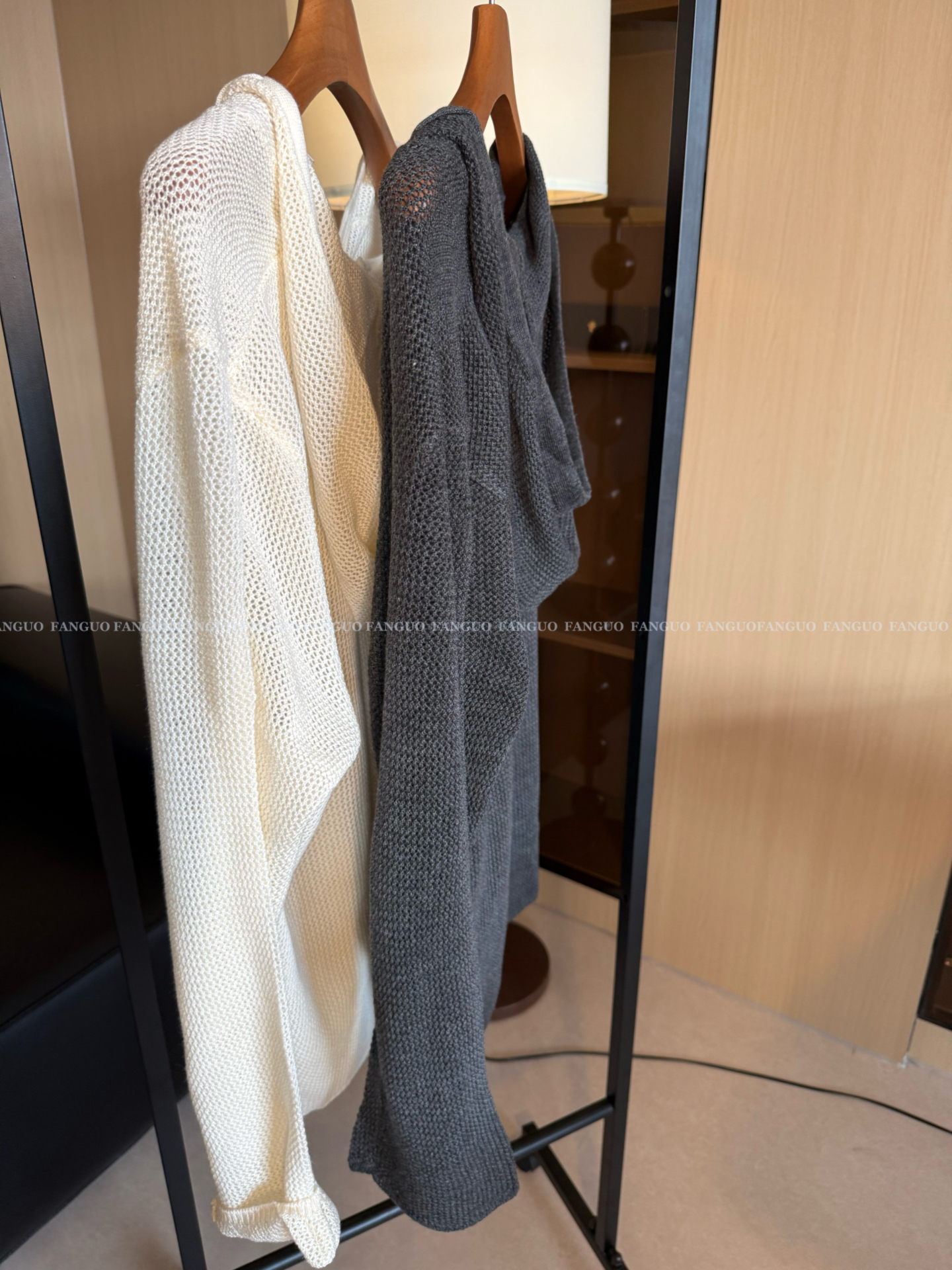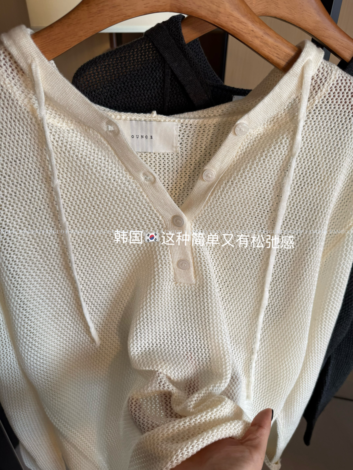 ounce 随意慵懒风~羊毛高级休闲连帽镂空针织衫洋气亨利衫女