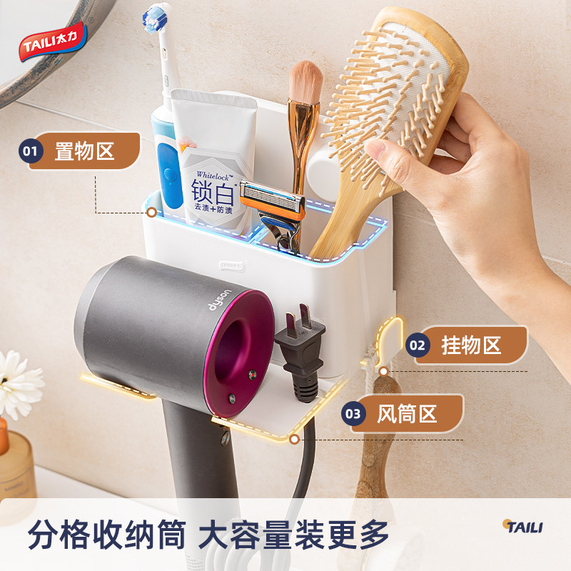 太力吹风机支架浴室免打孔吸盘壁挂置物架卫生间电吹风风筒机挂架