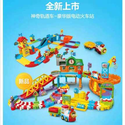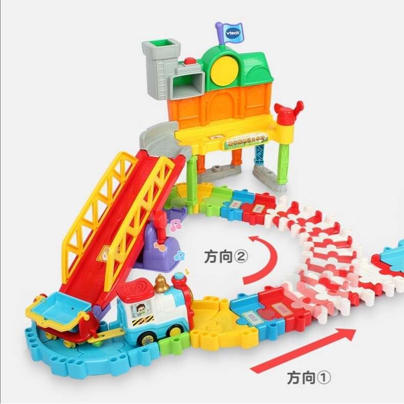 VTech伟易达豪华电动火车站轨道小火车儿童电动小汽车拼装益智声