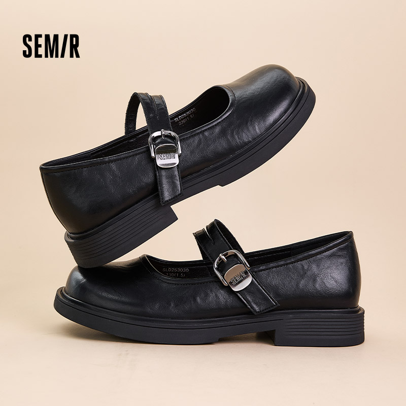Semir女鞋小皮鞋2025秋季新款黑色单鞋百搭软底一字扣带玛丽珍鞋