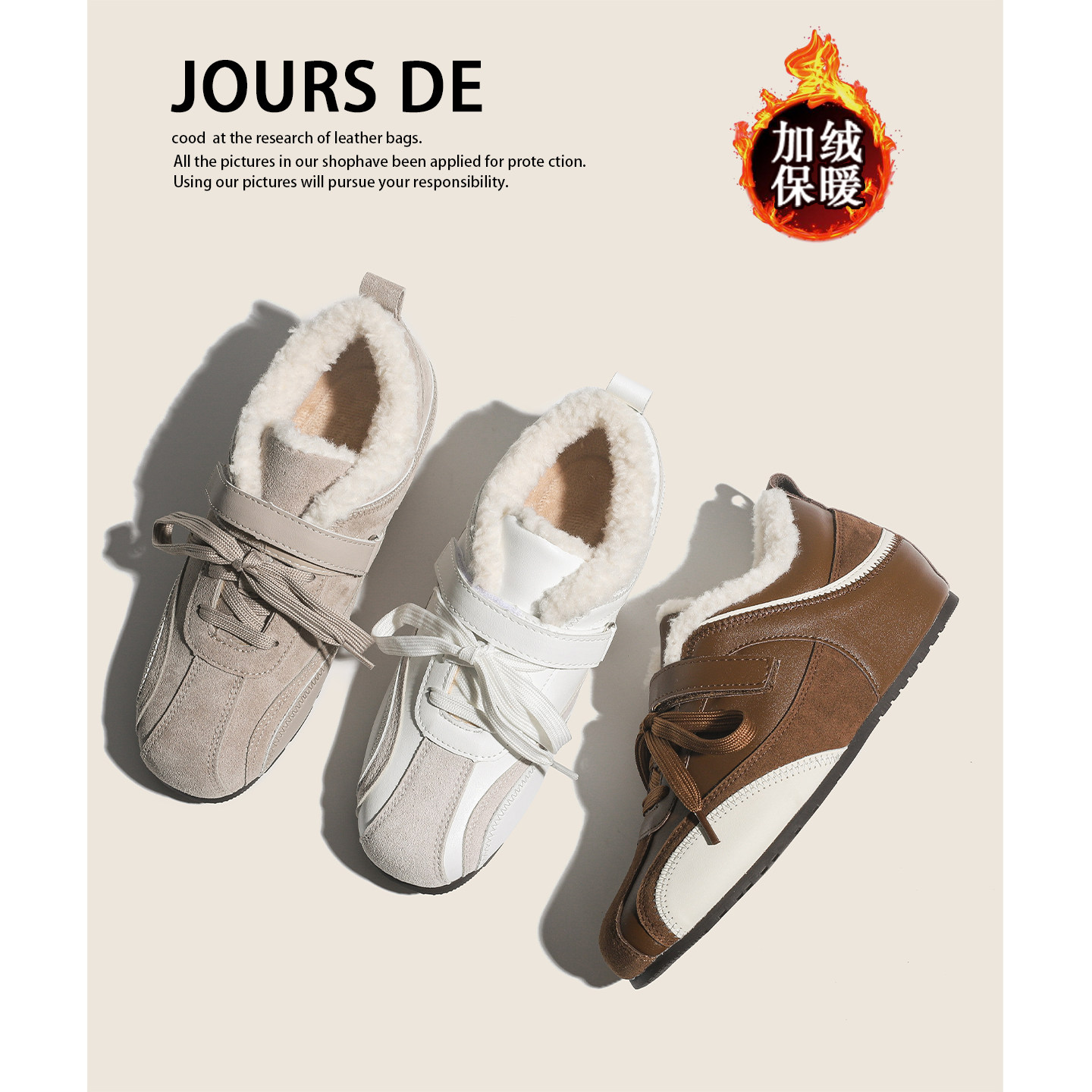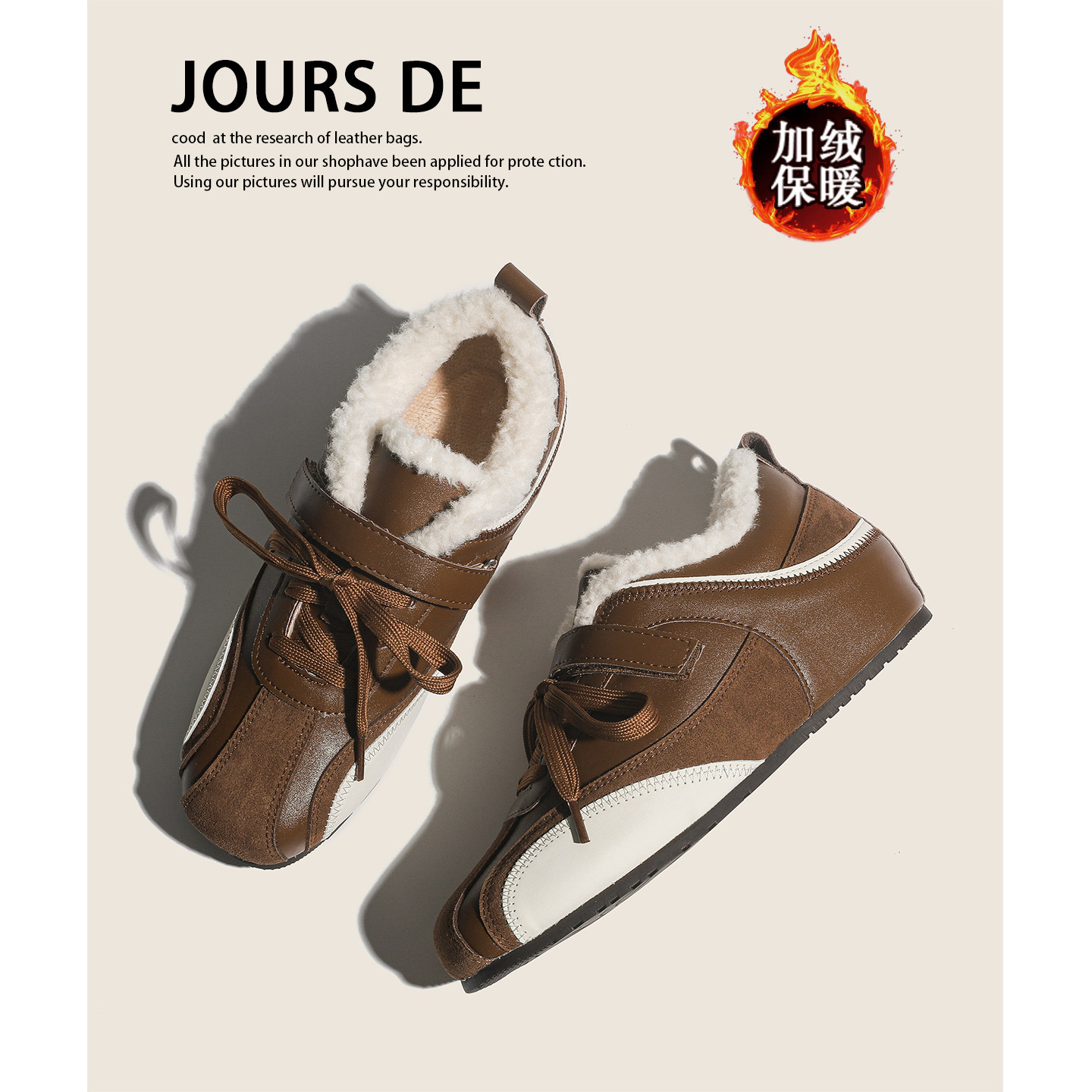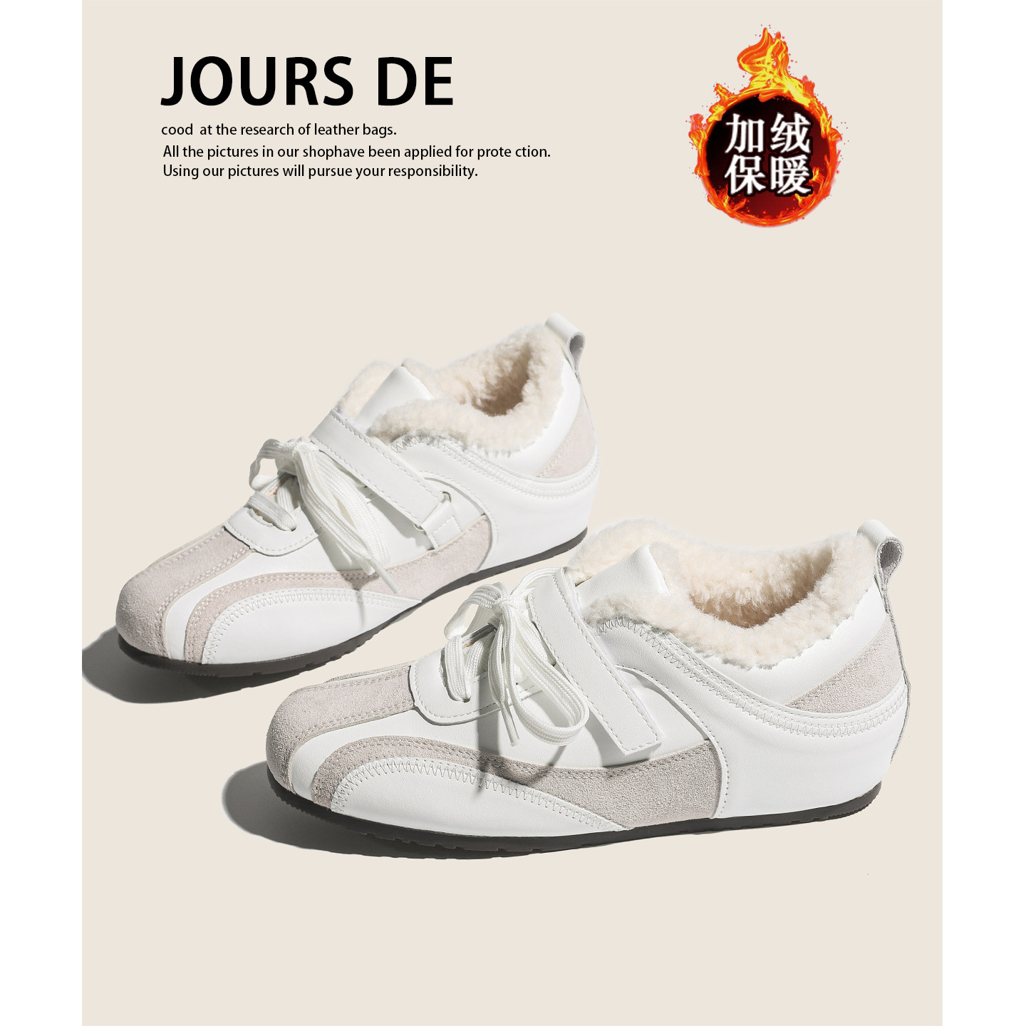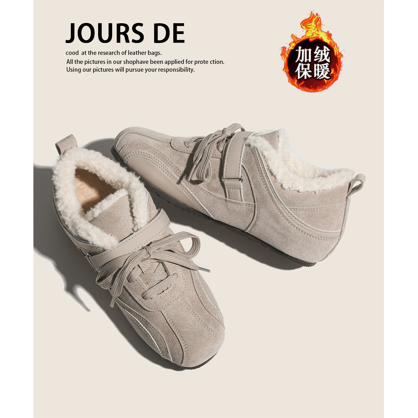 牛皮加绒保暖德训鞋冬季真皮内增高魔术贴学生毛毛休闲鞋女阿甘鞋